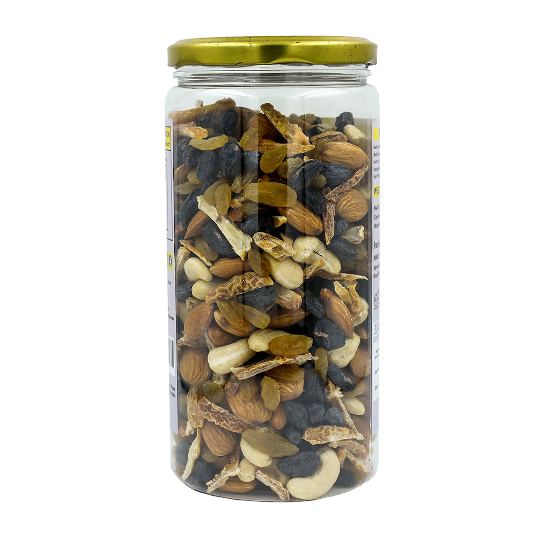 Discover the perfect blend of health and taste with our Panchmeva Mix, a delightful combination of almonds, cashews, brown raisins, black raisins, and dried sliced dates. Thoughtfully crafted for everyday use, this mix offers: